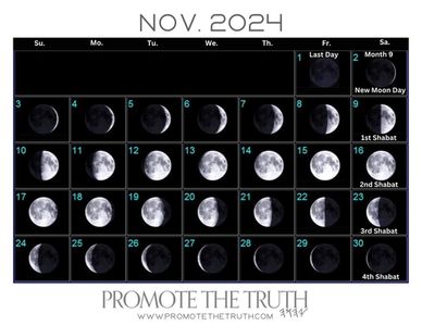 The calendar of Creation begins with New Moon Day followed by four complete weeks. Each week contains six work days and a seventh-day Sabbath rest.